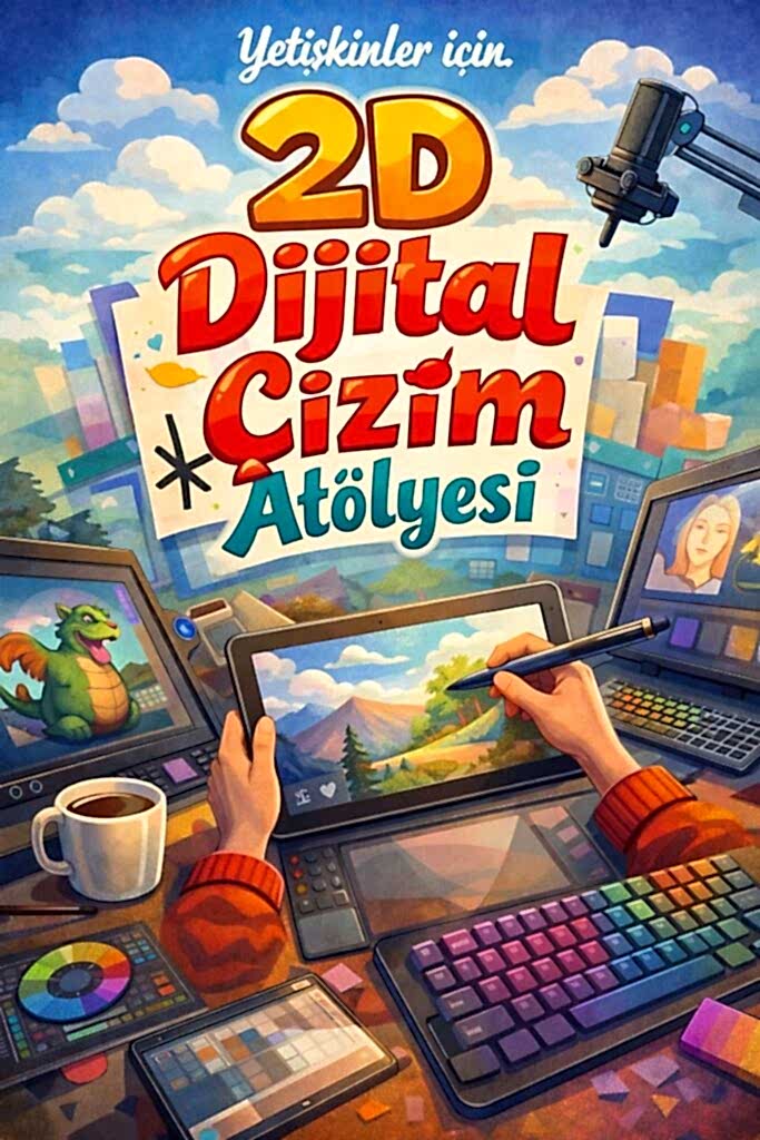 2D Çizgi Film Atölyesi, bir çizgi film sahnesini sıfırdan üretmeyi ve animasyona dönüştürmeyi öğreten kapsamlı bir online eğitim programıdır. Katılımcılar; karakter yaratımı ve tasarımı, mekân/arka plan tasarımı, katman düzeni ve animasyona uygun dosya hazırlama süreçlerini uygulamalı şekilde öğrenir.